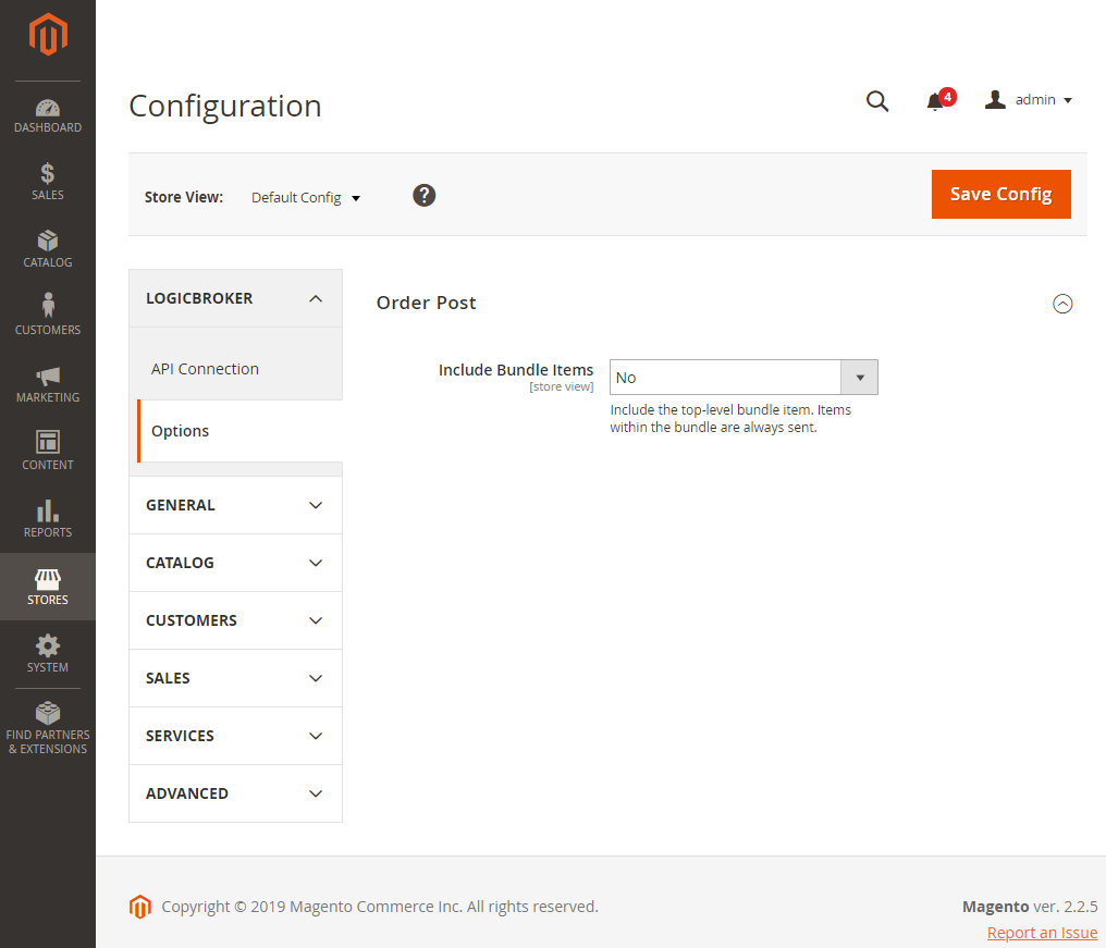 Under the Options tab in the Logicbroker extension configuration, you have the option of including any top-level bundle items on your order. You can change this any time to suit your needs. Regardless of your choice, items within the bundle will always be included.