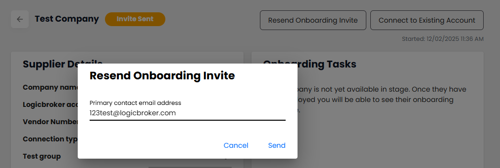For suppliers in an ‘Invite Sent’ or ‘Form Received’ status, retailers will now see the option to ‘Connect to Existing Account’ from the individual supplier page
